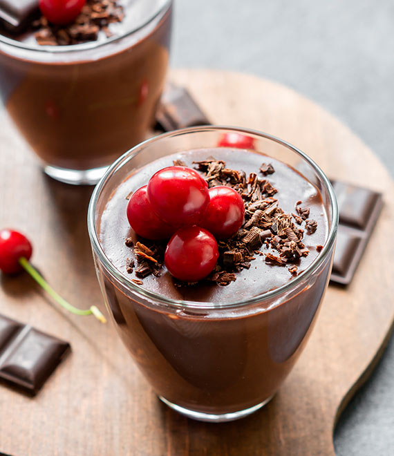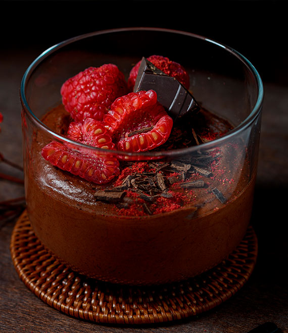La suave cremosidad del mousse de chocolate se fusiona con la delicadeza del mousse de frutos rojos para crear una experiencia de sabor celestial.