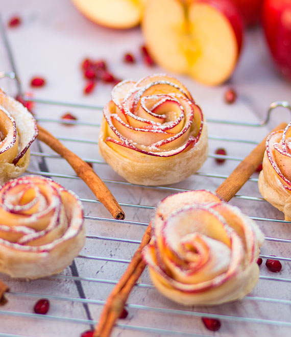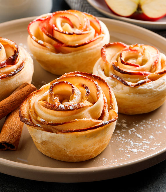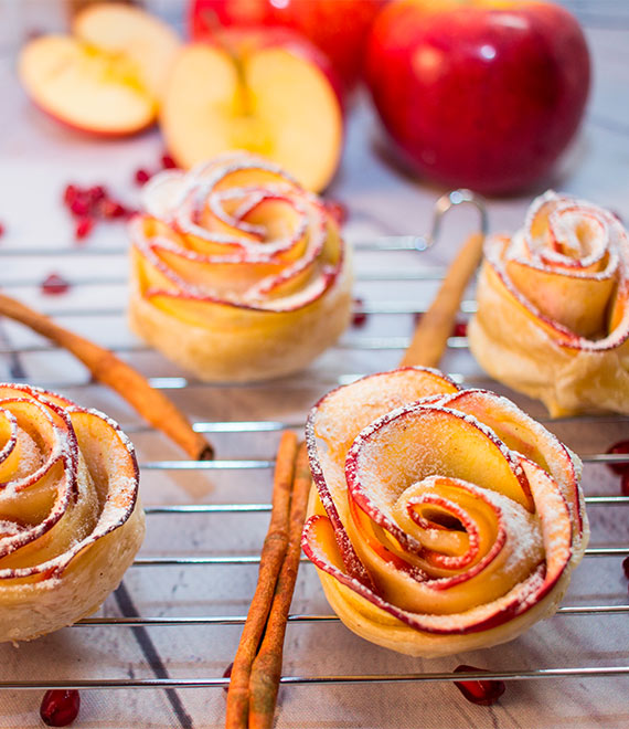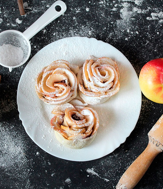 Estas rosas de manzana son una obra maestra culinaria que combina la suavidad y dulzura del puré de manzana con el toque especiado de la canela y la esencia de vainilla.